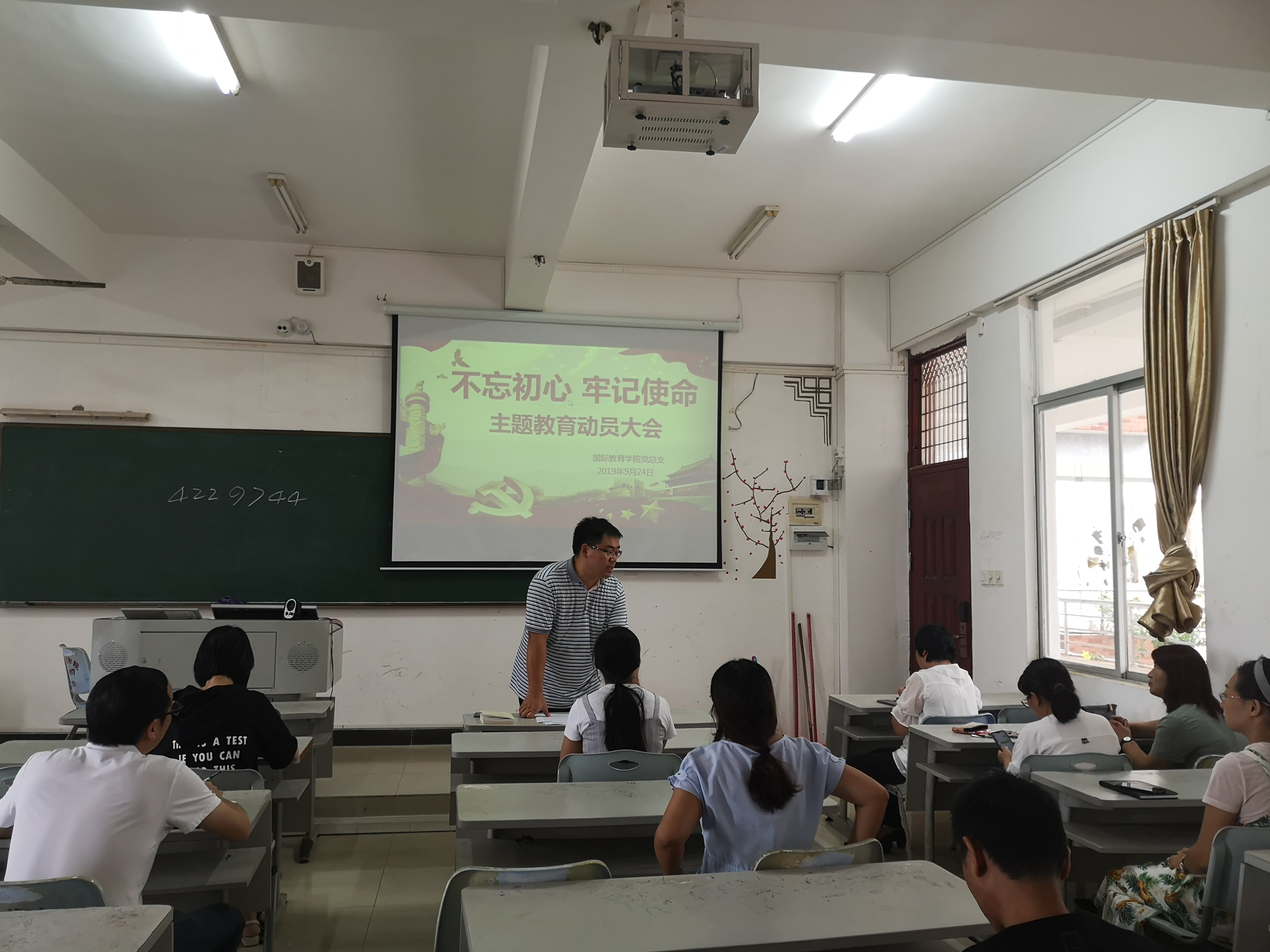 2019年9月24日,2138CC太阳集团国际教育学院党总支召开“不忘初心、牢记使命”主题教育动员部署会,深入学习贯彻习近平总书记在中央“不忘初心、牢记使命”主题教育工作会议上的重要讲话精神,传达海南省委主题教育第二批部署会议和省委第九巡回指导组动员大会和学校党委会议精神,切实按照第二批主题教育的指导要求,对全员开展主题教育进行动员部署。
