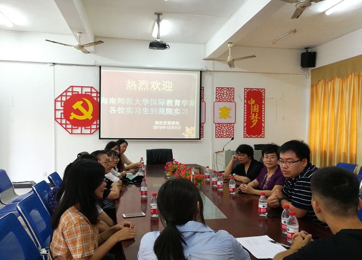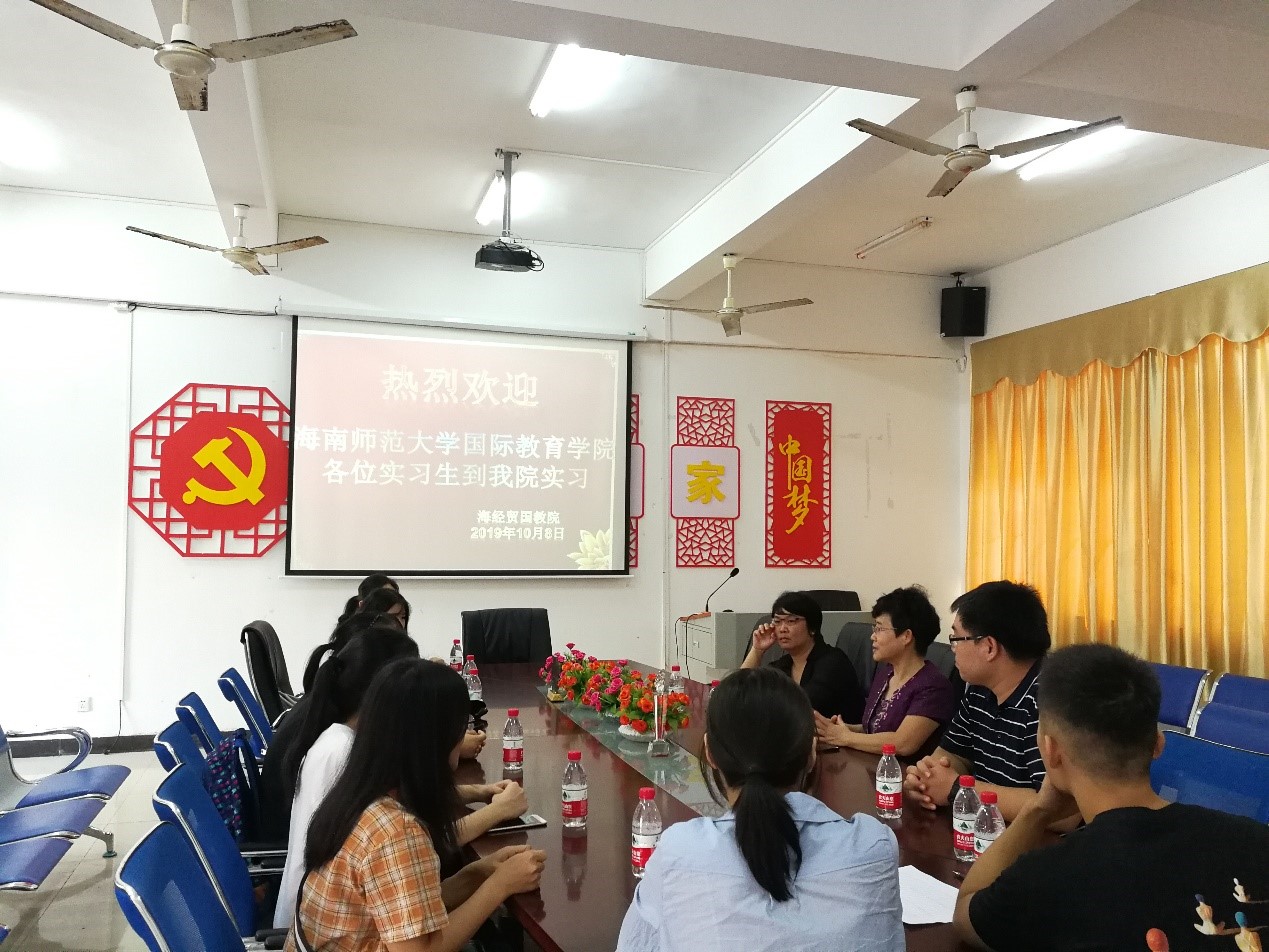 2019年10月8日下午,张恒博士带领海南师范大学国际教育学院的7位学生到我校与我校国际教育学院的张春玲院长、于勇书记以及黎瑛副院长进行了实习见面会,对实习生的实习工作进行了安排。