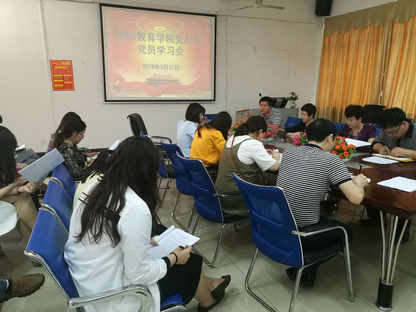 国际教育党总支先后组织召开党员学习会、支部委员会,学习党的十九届三中全会精神、中纪委十九届二次全会精神和《政府工作报告》等内容,了解掌握新时代全面从严治党的新形势、新要求和新任务。