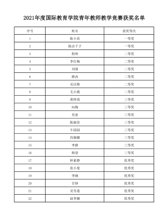 2021年度国际教育学院青年教师教学竞赛获奖名单