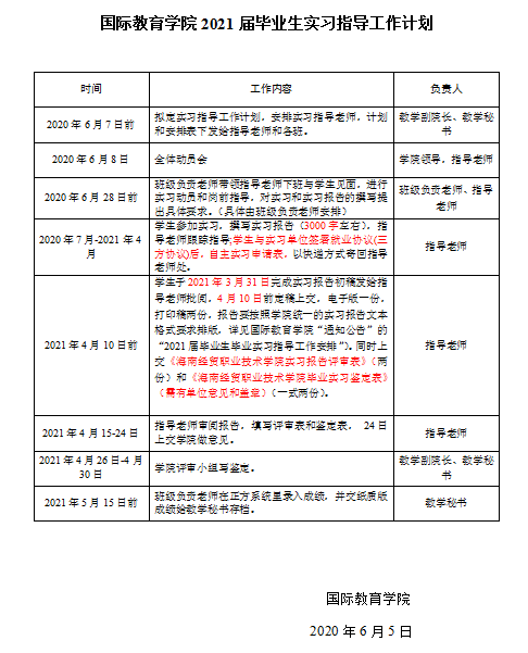 国际教育学院2021届毕业生(2018级)顶岗实习工作安排